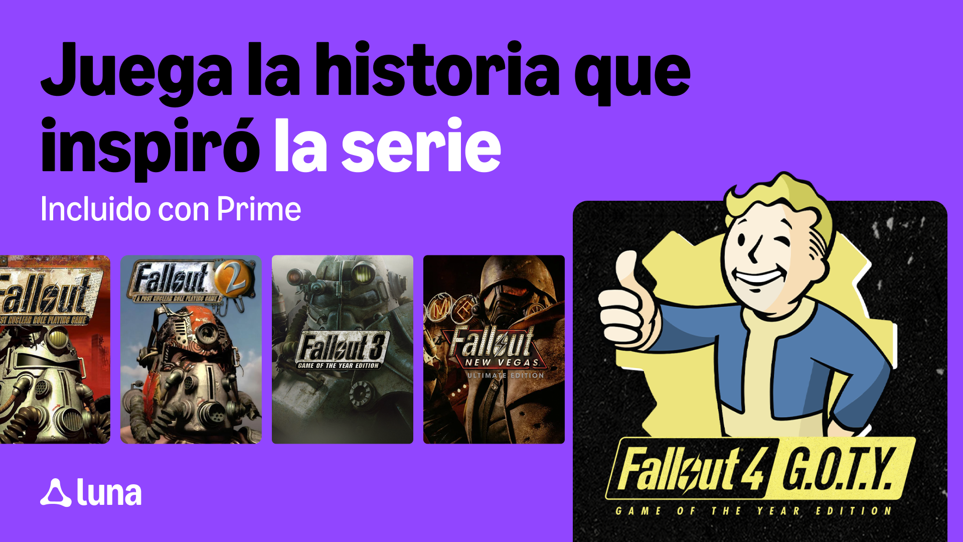 El comienzo de la segunda temporada de «Fallout» , de Kilter Films y ganadora de premios Emmy, el 17 de diciembre en Prime Video marca un gran momento para regresar al yermo y sumergiros en el universo de «Fallout» Para celebrar este esperado estreno, este mes los miembros de Prime tendréis acceso a varias aventuras posapocalípticas con la nueva versión de Amazon Luna.