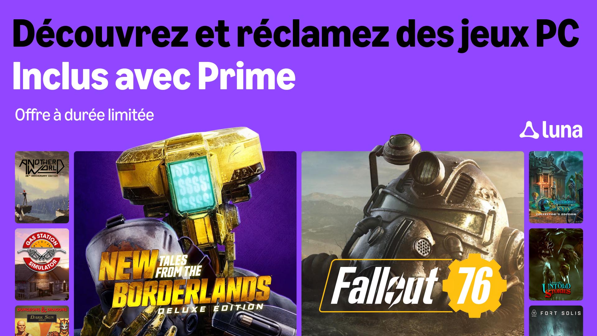 Consultez cette page pour découvrir la dernière sélection de jeux PC disponibles pour les membres Prime ! Et consultez cette FAQ pour en savoir plus sur le nouveau service Luna.